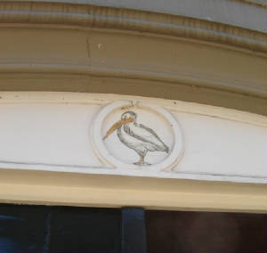 | Grave: geschilderde pelikaan boven deur van 19 eeuws pand |