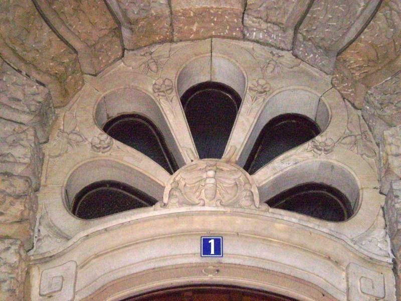 aan de toenmalige mode. Hierboven zie je al het bewuste poortgebouw, hieronder volgen de 2 snijramen.