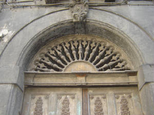 | Napels: oud 18e-eeuws bovenlicht in monumentaal pand (heilig hart op een schelp) |