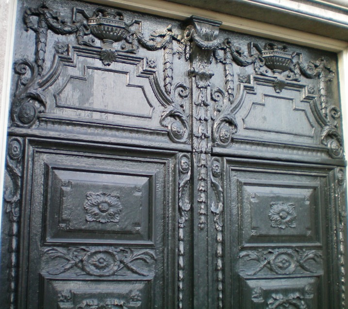 | Voorburg-kerkdeur-detail houtsnijwerk |